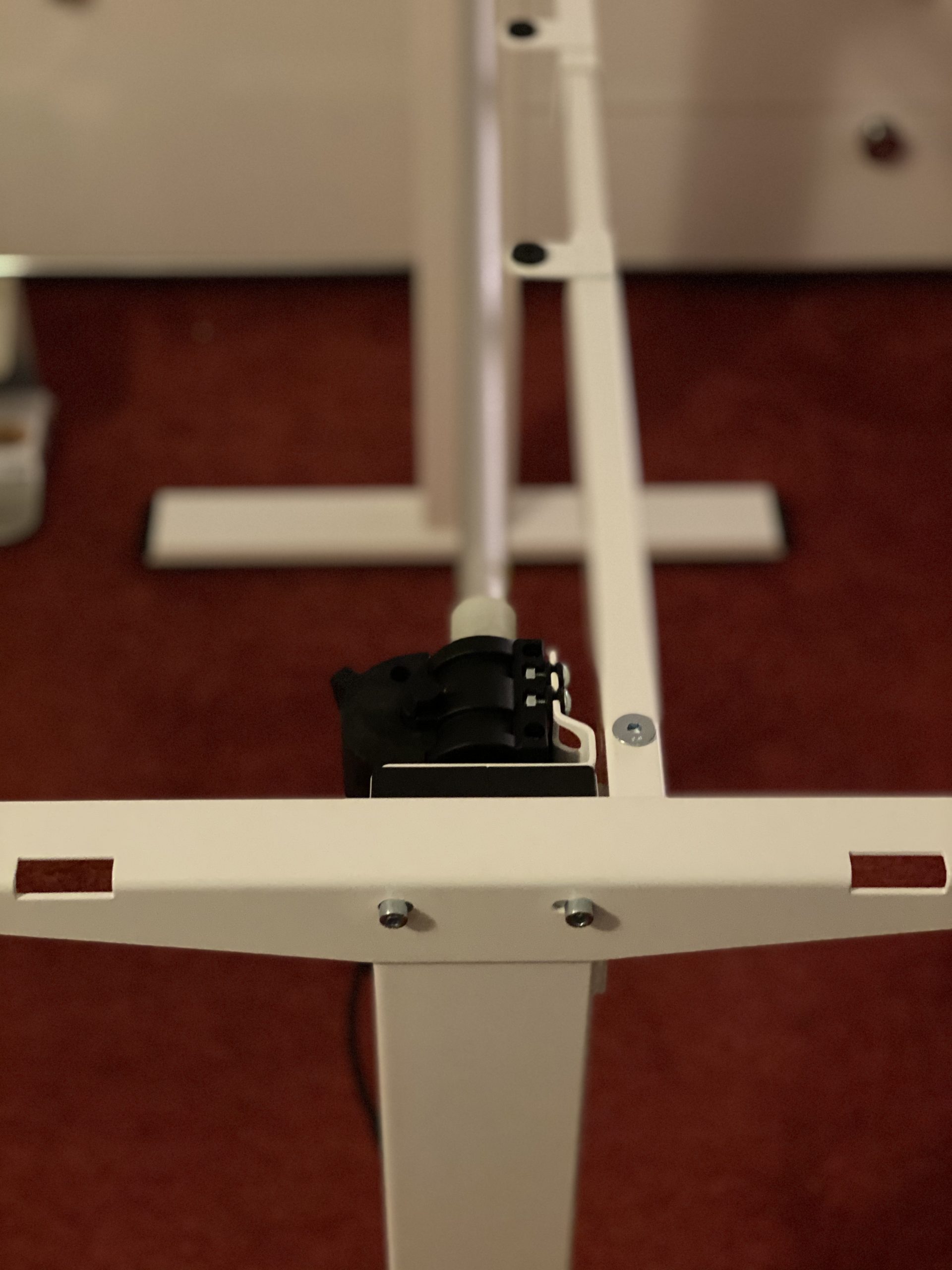 FlexiSpot bietet als Ergänzung zum Schreibtisch verschiedene Lösungen um die Kabel verschwinden zu lassen. Ich habe die Kabelführung nach unten zum Boden bestellt um hier ein etwas sauberes Bild zu haben. Alle Kabel werden in der Mitte durch eine Kabelführung zum Boden geführt. Diese ist flexibel und kann sowohl in der niedrigsten Position wie auch in der höchsten Position genutzt werden. Darüber hinaus habe ich meinen Monitor per Halterung am Schreibtisch platziert um nicht unnötigen Platz durch einen Monitorfuß zu verschwenden. Das kann ich nur für jeden Schreibtisch empfehlen. Die Halterung von FlexiSpot ist stabil und flexibel in der Anwendung.