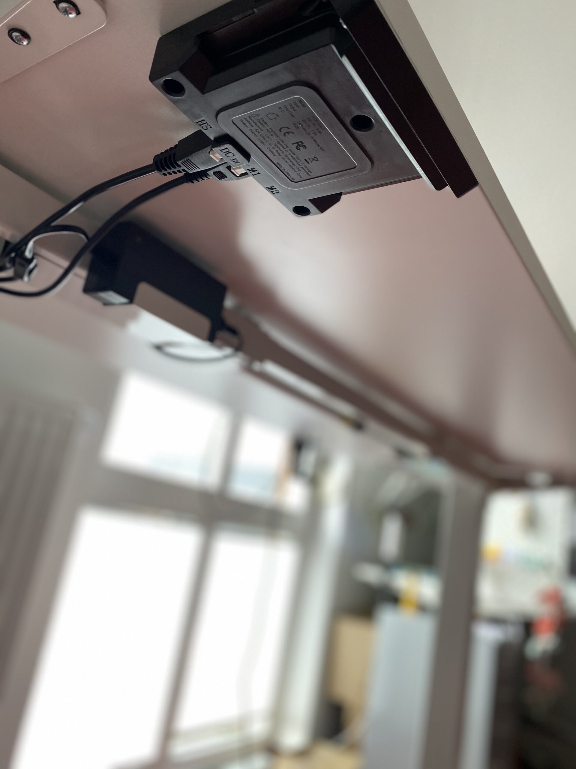 Es gibt verschiedene Bedieneinheiten für die Schreibtische. Während das Basismodell nur zwei Tasten für das manuelle hoch- und herunterfahren hat, verfügt mein Schreibtisch über die Standard-Bedieneinheit. Hier gibt es ein Display welches die Höhe anzeigt, zwei Tasten für das hoch- und herunterfahren und vier Tasten um meine bevorzugten Höhen abzuspeichern. Drückt man einer der vier Tasten fährt der Schreibtisch auf die programmierte Höhe. Die Programmierung ist schnell erledigt. Man fährt den Schreibtisch auf die gewünschte Höhe und hält die Taste so lange gedrückt bis das Display ein S gefolgt mit der Tastennummer zeigt und die Speicherung mit einem Piepton bestätigt wird. Das Display schaltet sich nach kurzer Zeit aus sobald der Tisch in der gewünschten Position verbleibt.